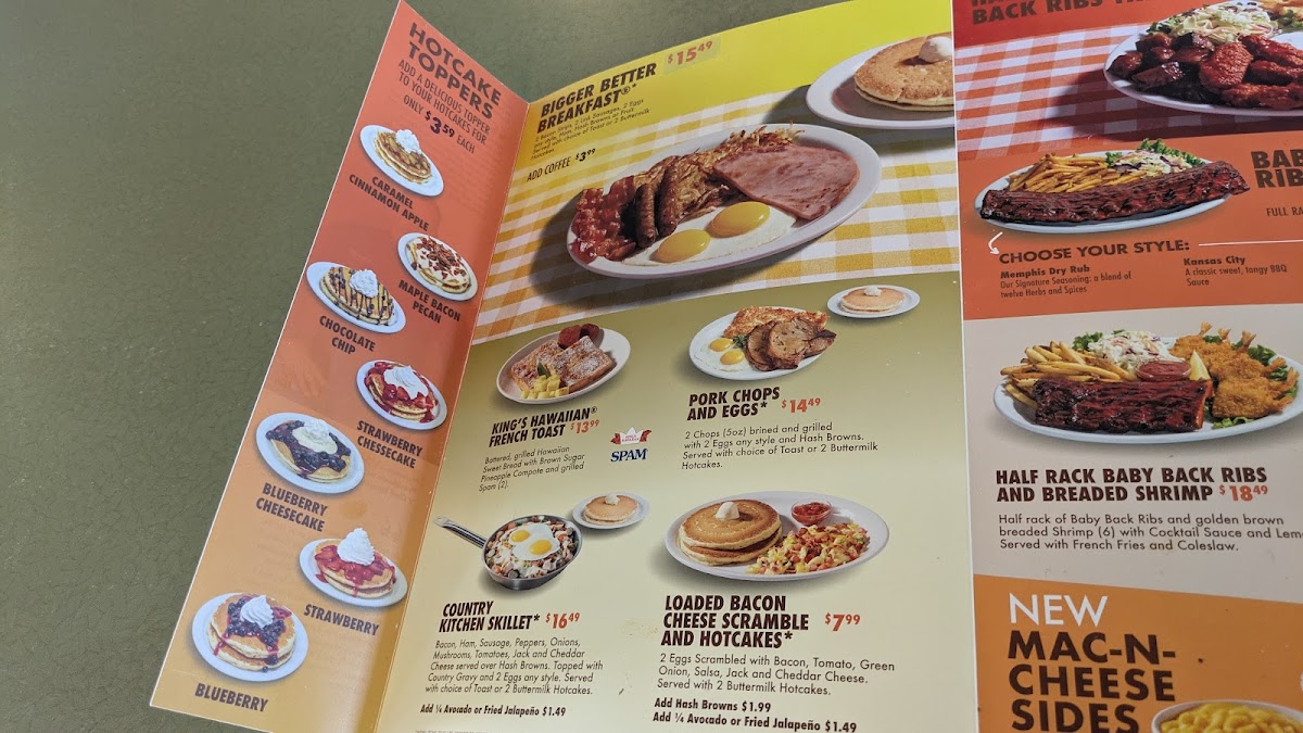 Sweet indulgences await with their Hotcakes, French Toast, and Waffles. The Kings Hawaiian French Toast and Chicken & Waffle are sure to satisfy any sweet tooth or brunch craving.